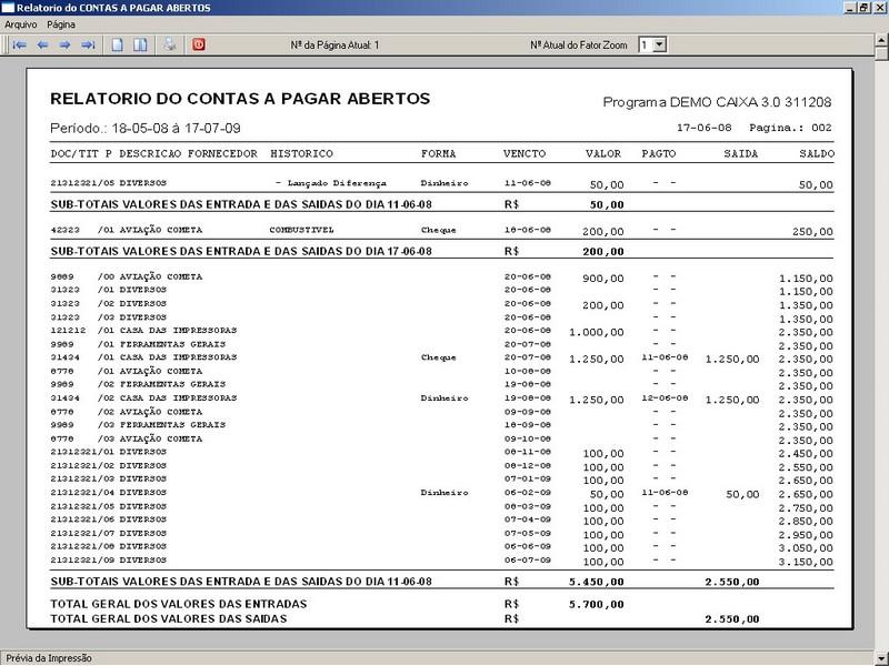 a Pagar + Relatório de Contas a Receber + Recibo de Pagamento +
