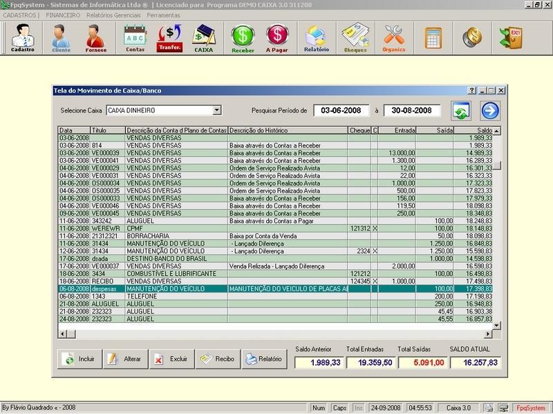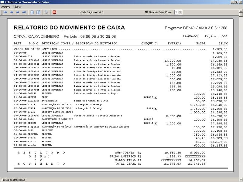 Relatório do Caixa + Plano de Contas + Centro de Custos + Clientes +
