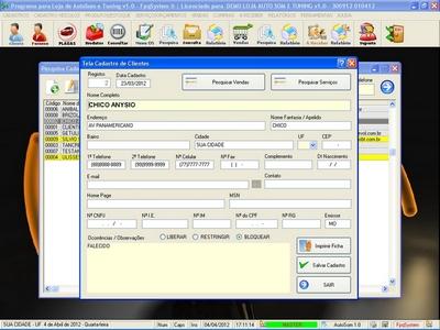 Cadastro de Clientes / Fornecedores / Atendente / Cadastro de Placas /