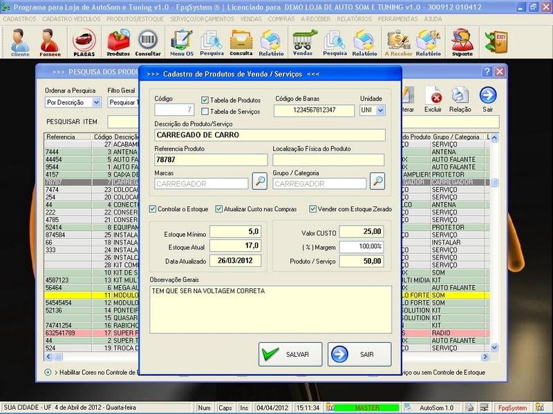 Cadastro de Produtos e Serviços / Vendas / Compras /