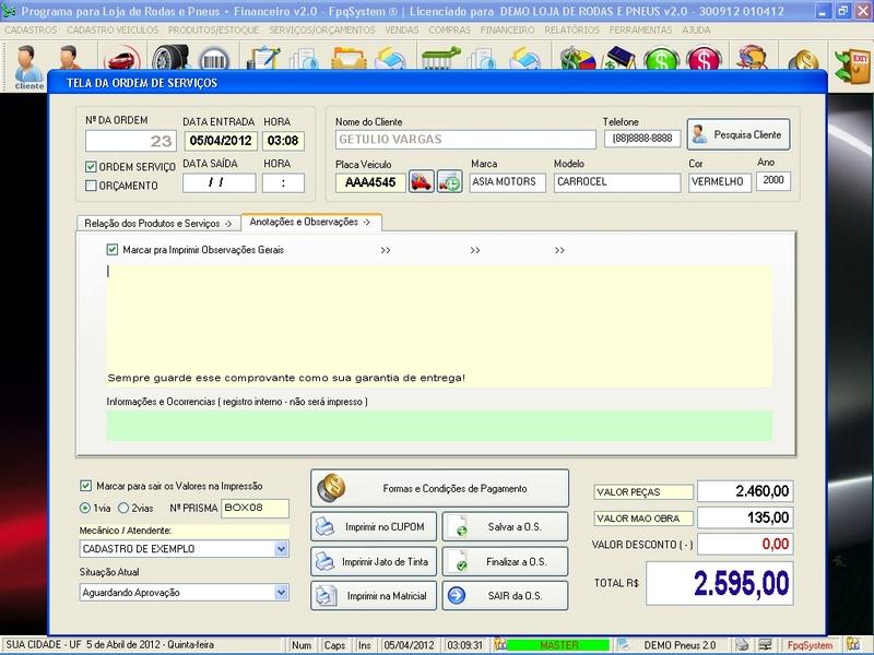 para Loja de Rodas e Pneus com Vendas, Estoque e Financeiro v2.0