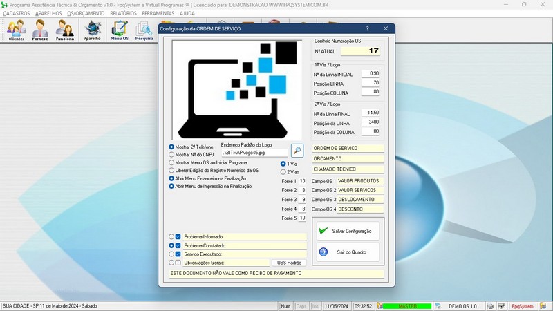 de OS / Personalizar Fundo de Tela / Recibo de Pagamento / Logomarca +