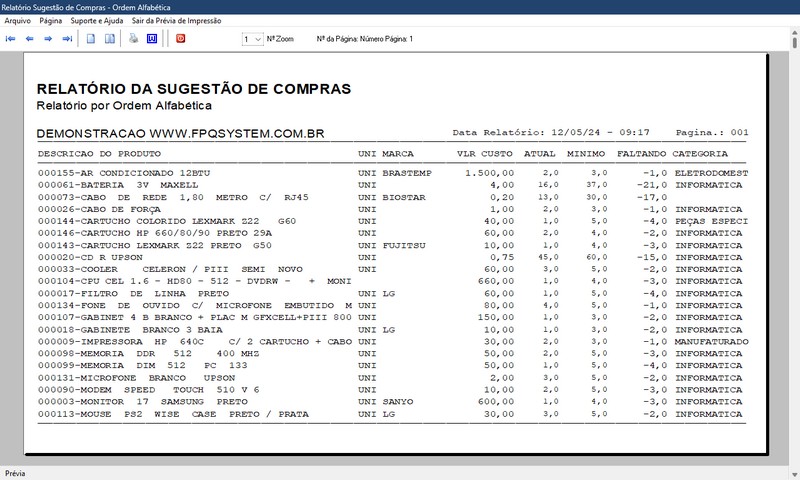 de Produtos pra Reposição