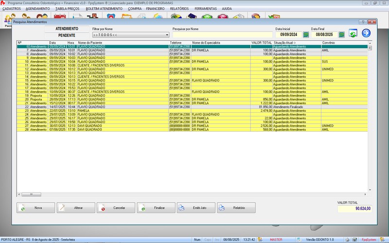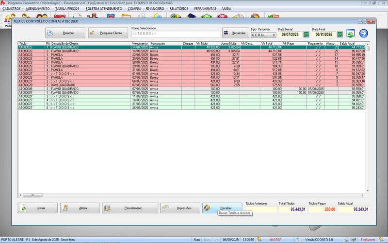 Relatório dos Atendimentos / Contas a Receber /