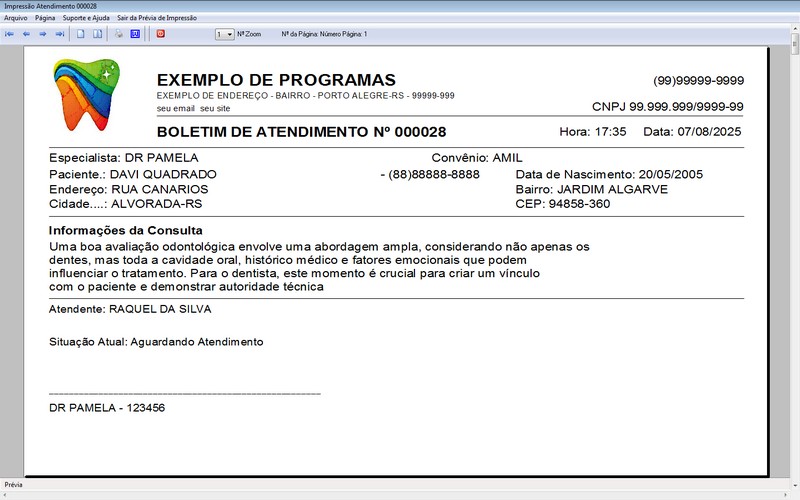 na impressão do Atendimento