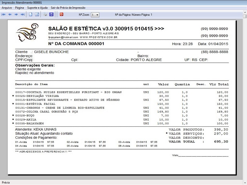 Programa Salão de Beleza, Agendamento, Vendas e Financeiro v3.0
