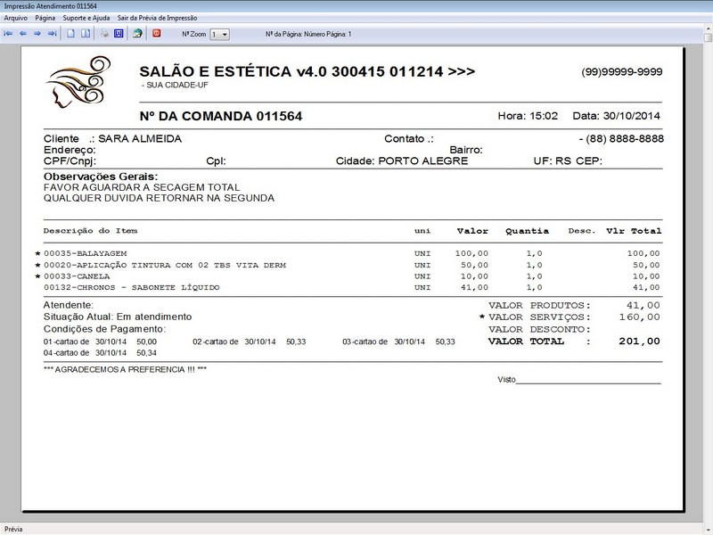 / Relatório dos Atendimentos / Relatório das Comissões / Vendas