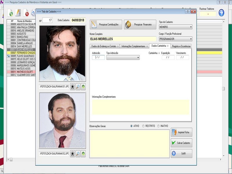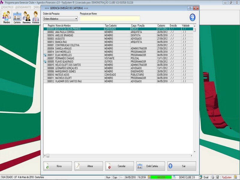 Cadastro de Carteirinhas e Emissão / Funcionários / Fornecedores