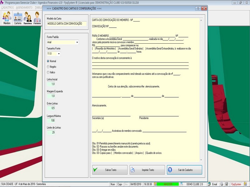 de Cartas / Impressão de Carta / Contas a Receber / Contas a Pagar /