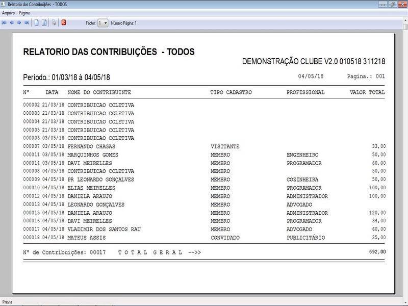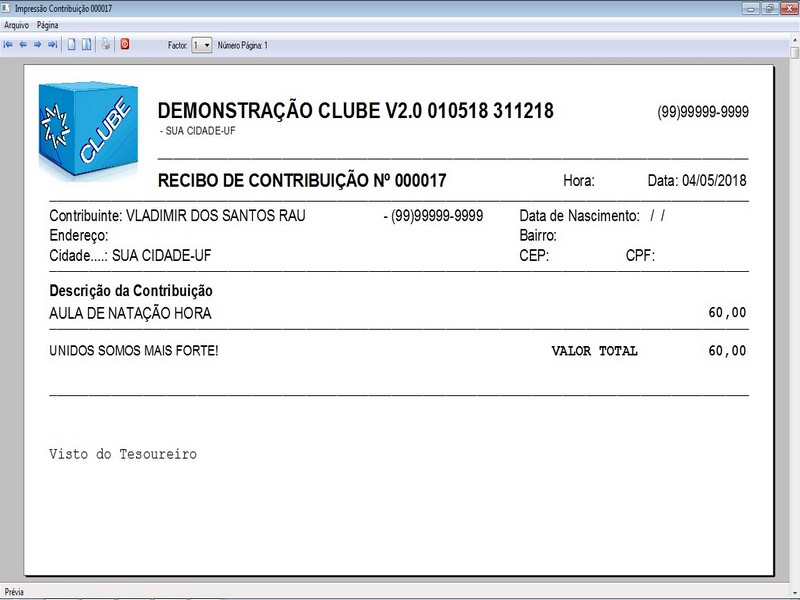 na impressão no Recibo de Contribuição