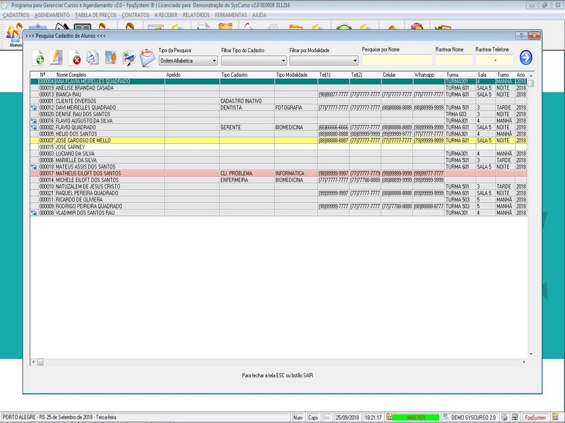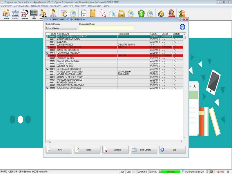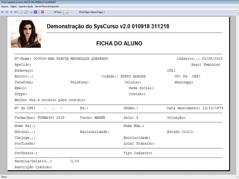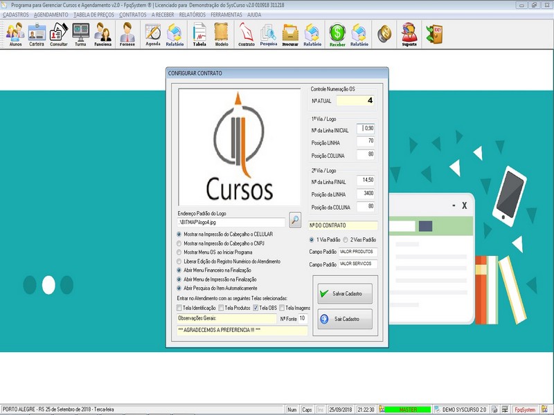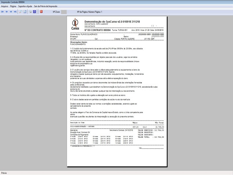 Contratos / Cadastro de Alunos com foto / Cadastro de Turmas /