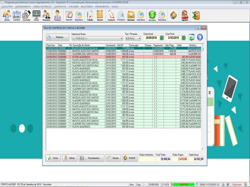 Contratos / Aniversariantes / Tabela de Preço / Contas a Receber /