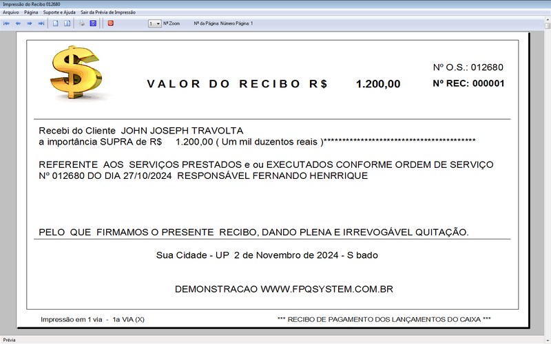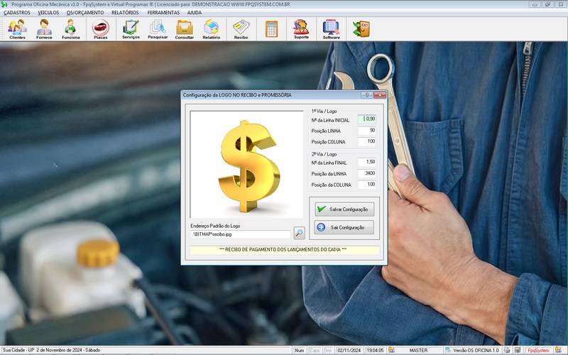 de Pagamento / Impressão do Serviço / Personalizar logomarca /