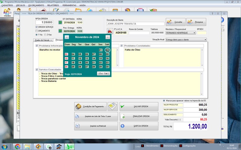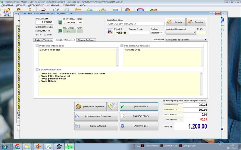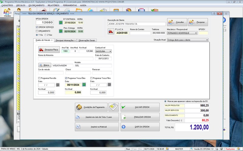 Ordem de Serviço Oficina Mecânica v1.0 Ordem de Serviço / Orçamentos / Cadastro