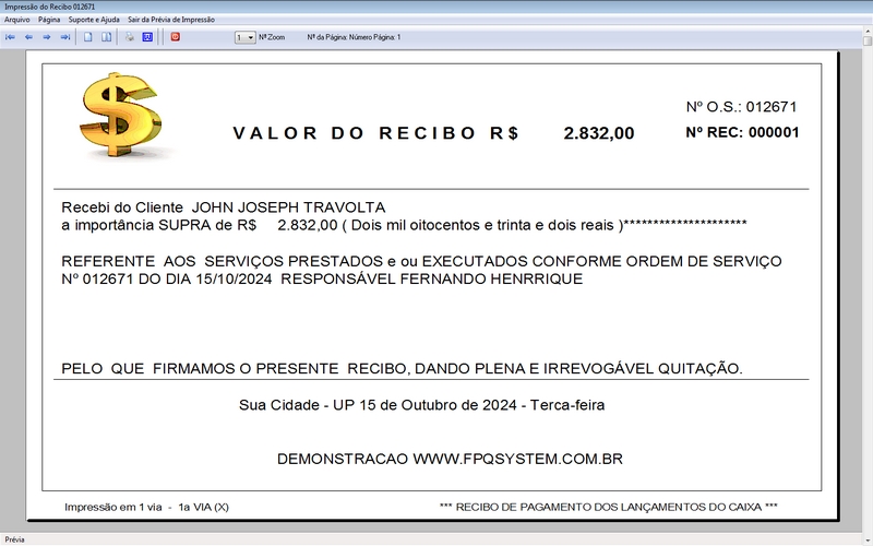 - Impressão da OS em JATO DE TINTA / LASER