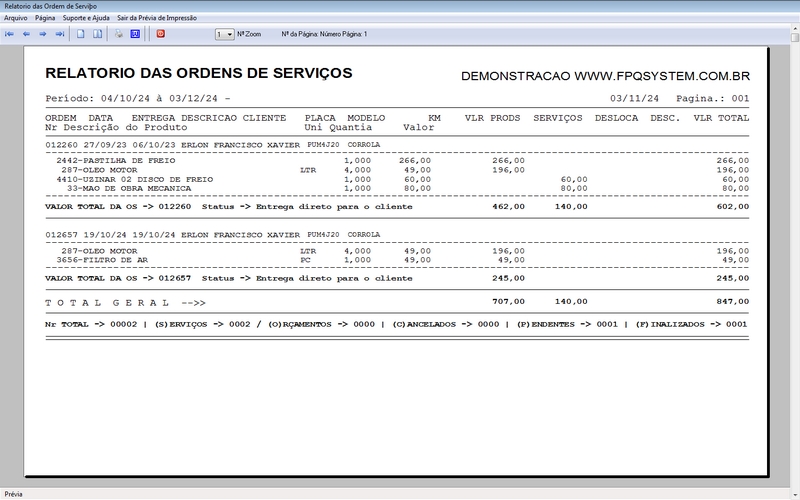 - Relatório das OS realizadas por: MECANICO / CLIENTE / STATUS