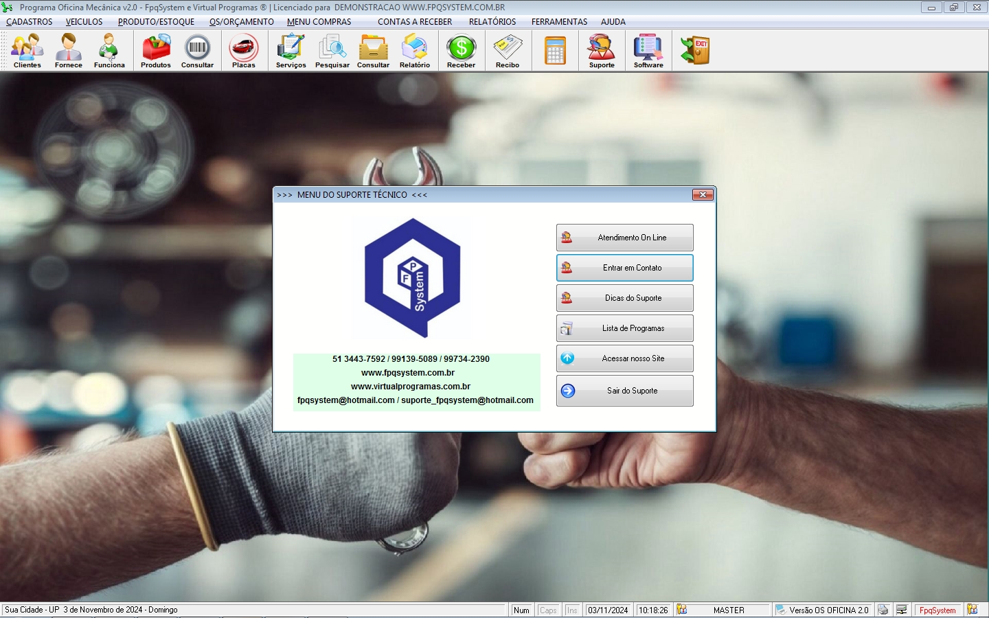- Suporte e Atendimento OnLine via site ou menu ajuda do programa