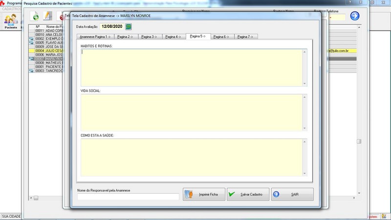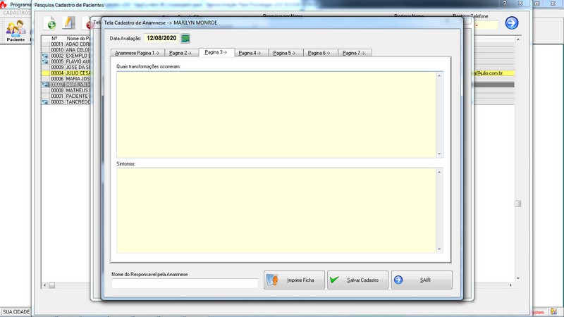 Anamnese / Profissional / Ficha de Paciente / Tabela de Preço / Recibo