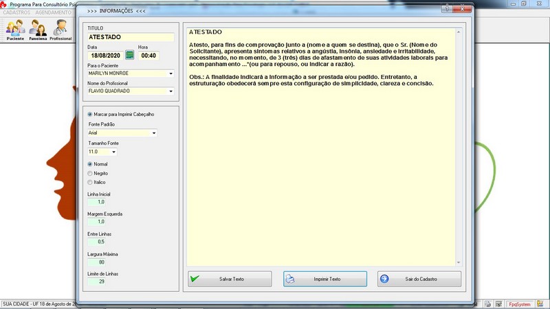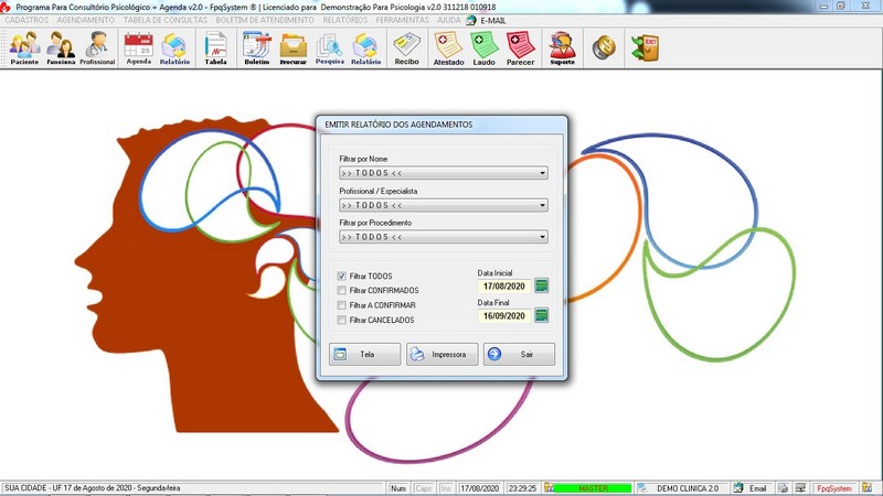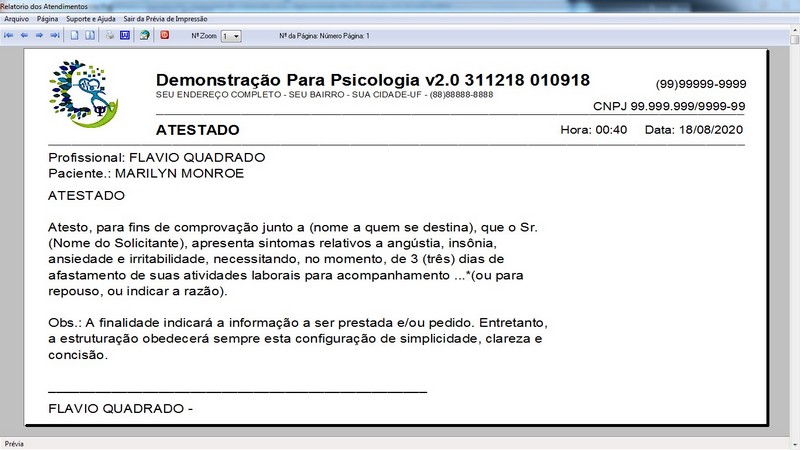 Relatórios de Atendimentos / Agendamento / Atestado / Laudo / Parecer /