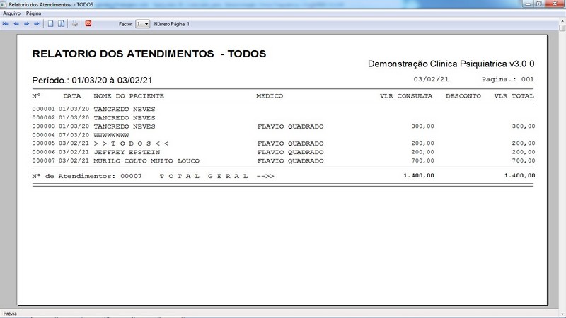 / Tabela de Preço / Recibo de Pagamento / Relatórios de Atendimentos /