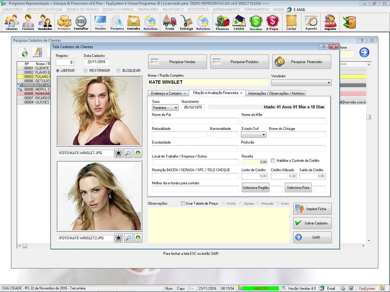 Orçamento / Clientes / Fornecedores / Representadas / Vendedores /