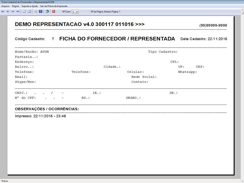 Tela Cadastro Fornecedor / Representada