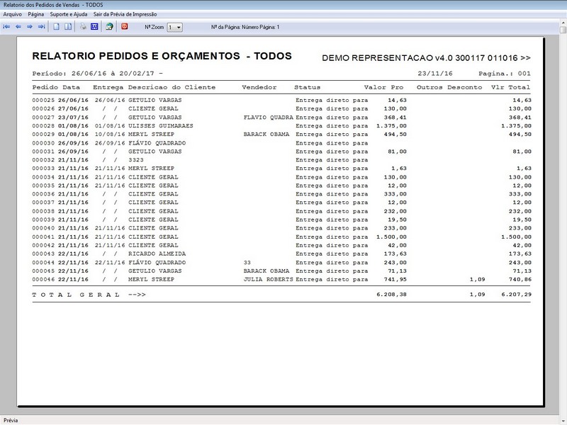 desconto / Controle de Comissão / Controle de Entrega / Recibo de