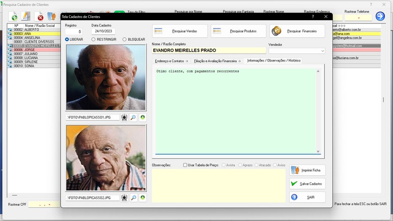 + Acesso por nivel de usuario + Compras + Financeiro + Foto nos