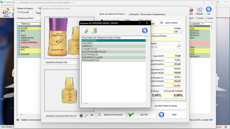 Produtos + Reajuste de Preços em bloco + Relatórios Estatisticos + Limite de
