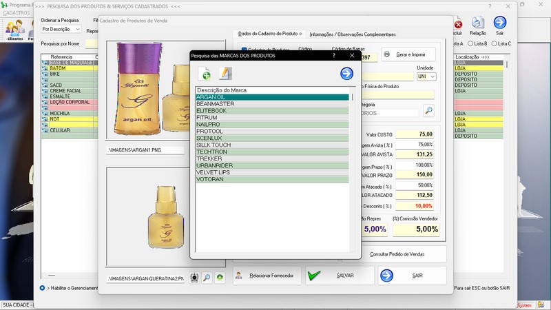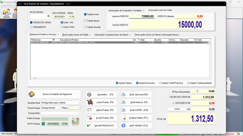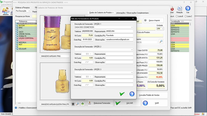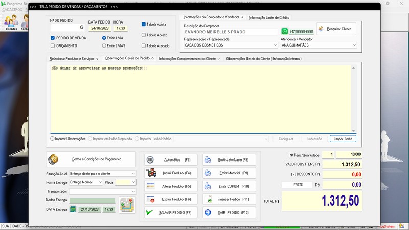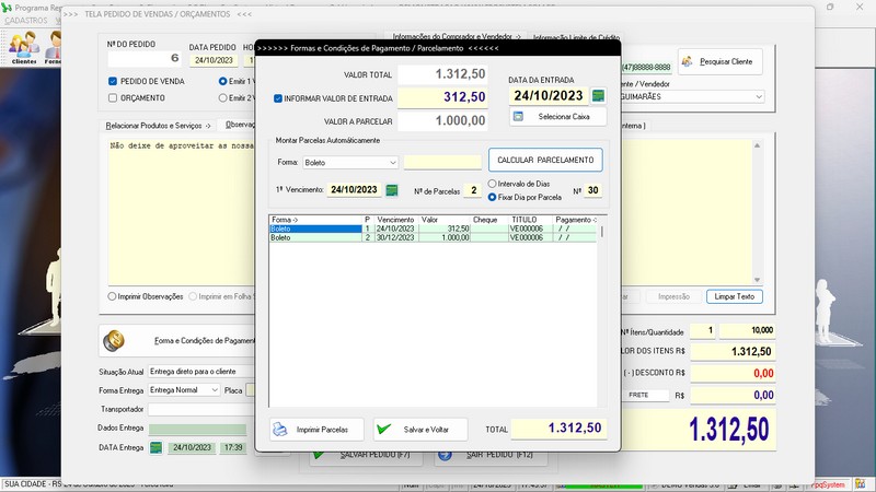 desconto / Controle de Comissão / Controle de Entrega / Recibo de