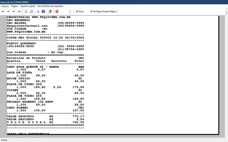 com impressão do pedido em A4 ou cupom não fiscal.