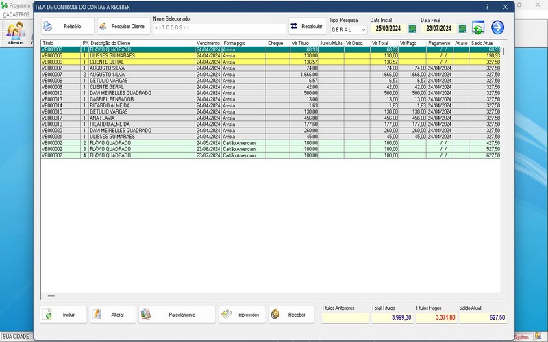 receber, pedido de compras, gerando contas a pagar, com fluxo de caixa